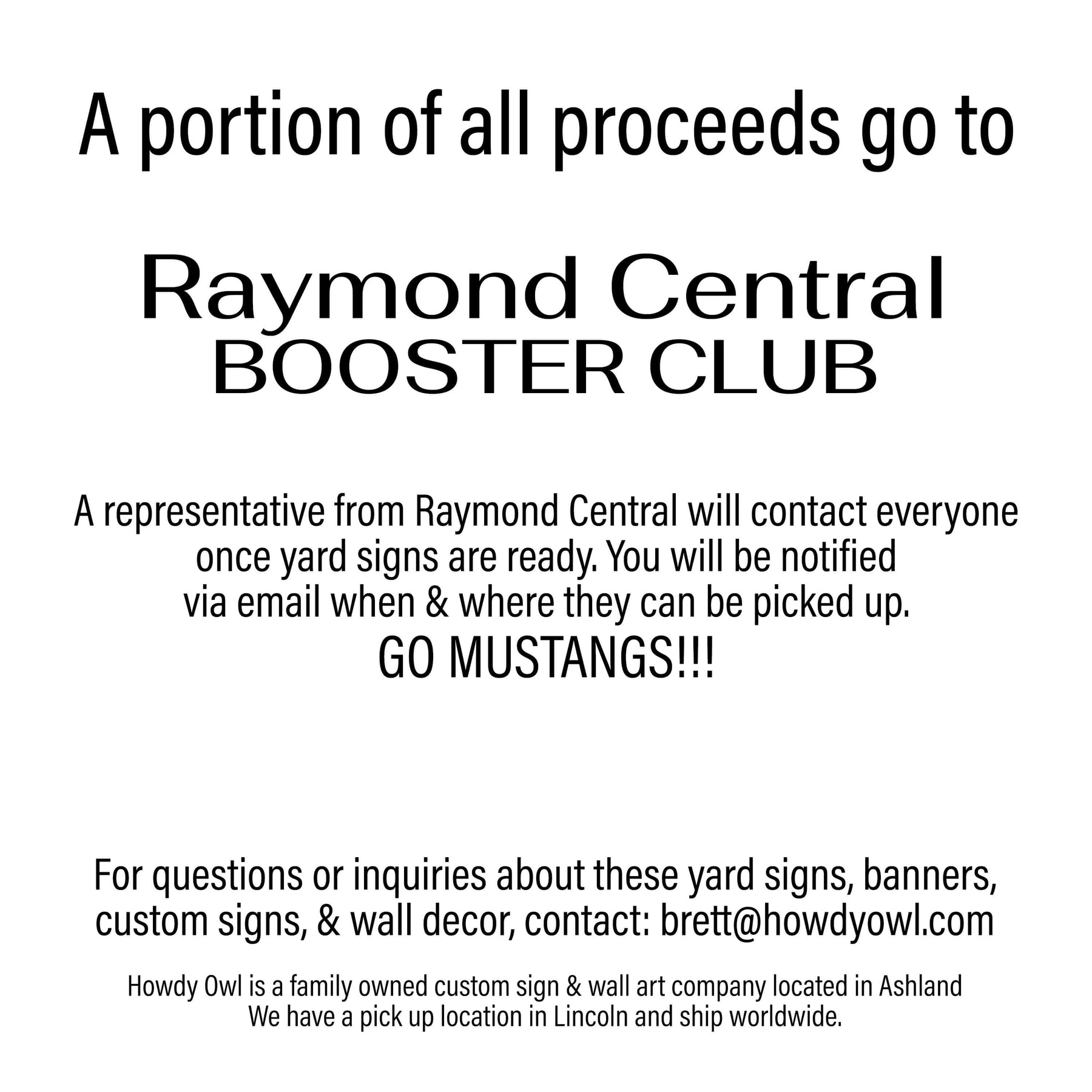 If you're looking for a fun and unique way to show your support for the Raymond Central Mustangs sports team players, personalized yard signs are the way to go. These eye-catching signs can be customized with the name of your favorite athlete, making them perfect for proudly displaying in your front yard or outside the stadium during game days. Not only do they add a personal touch to your surroundings, but they also serve as a great morale booster for the players themselves. Imagine their faces lighting up when they see dedicated fans cheering them on with these one-of-a-kind signs! So go ahead and grab one to show off your school pride and let everyone know that you're part of this incredible team's journey towards victory!